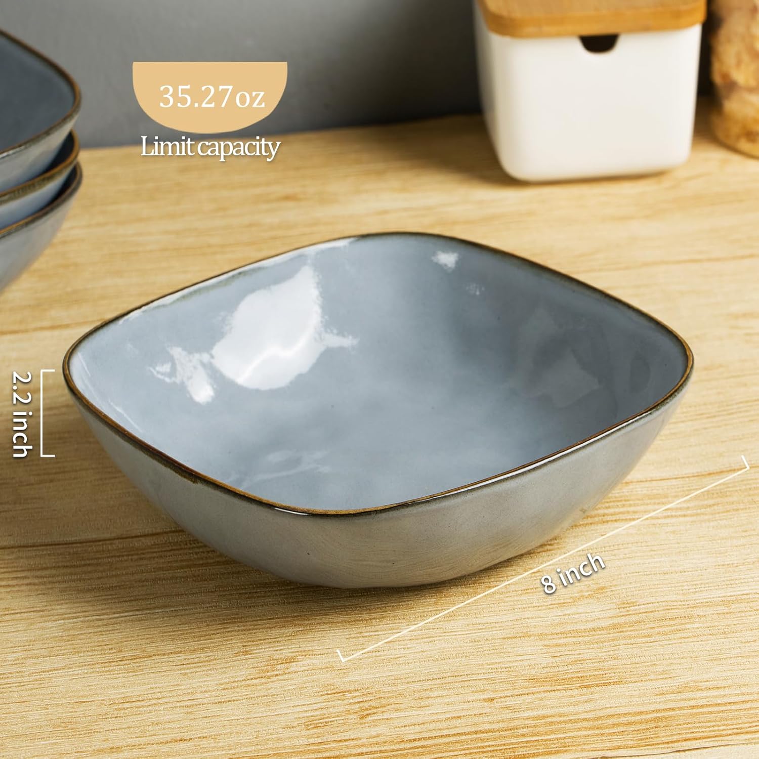 - 【Pasta Bowls Set of 4】Each bowl measures 8 inches. Great for pasta, noodles, desserts, ice cream, salads, rice, beans, and other dishes that include sauce or soup. Suitable for family dinner bowls and serving bowls for entertaining.
